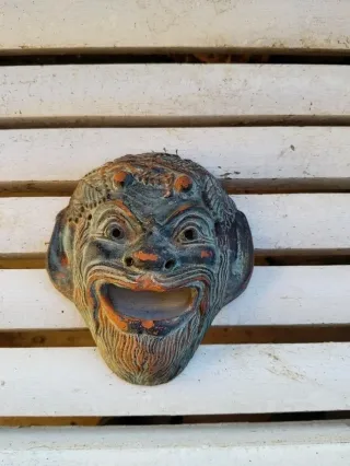Máscara decorativa de sátiro, elaborada en terracota. Su diseño detallado le da un aspecto único. - Material: Terracota. - Acabado rústico. Medidas 15X 14 cm, no envío por inpost