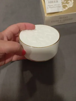 Polvera vintage de Avon con un diseño elegante. - Tapa con relieve decorativo. - Caja dorada con motivos florales. Preciosa. No puede ser más bonita, coqueta y especial. Antigua pero intacta, sin usar. Tan solo la caja de cartón tiene alguna marquita. Con su información de la época, que inspira una belleza delicada donde el uso del maquillaje era un lujo.