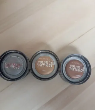 Lote de tres sombras de ojos en crema Maybelline Color Tattoo. - Tonos variados. - Formato en tarro.