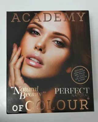 Set de maquillaje Natural Beauty de Academy. - Incluye: Highlighter, Nail Polish, Lip Gloss, Eye Shadow y más. - Presentación Of Colour.