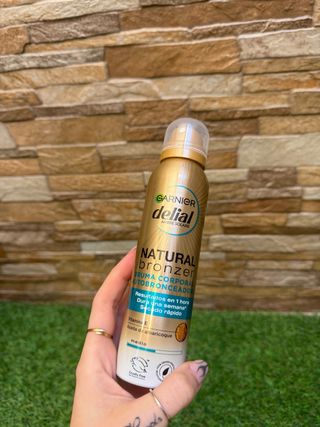 Brume autobronceadora corporal Garnier Delial Natural Bronzer. - Resultados en 1 hora. - Duración de hasta una semana. - Secado rápido. - Contiene Vitamina E y aceite de albaricoque. - Tono medio.