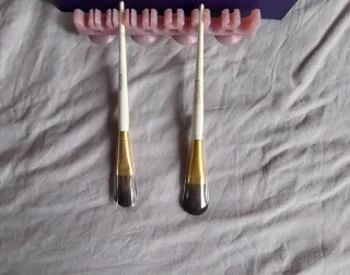Conjunto de brochas de maquillaje para diversas aplicaciones. - Incluye brochas de diferentes tamaños y formas. - Mango de color negro y morado. - Nuevo sin usar [ Precio negociable]