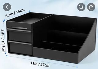 Práctico organizador para tus productos de belleza y maquillaje. Mantiene todo ordenado y a mano. - Diseño moderno con compartimentos. - Acabado en negro con detalles dorados.