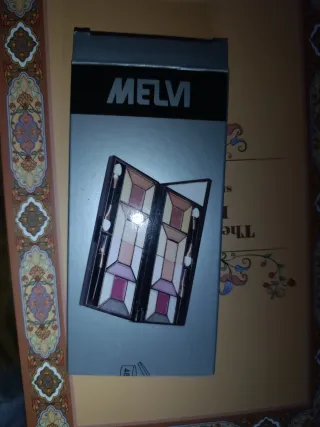 Paleta de maquillaje MELVI con varios tonos de sombras. - Incluye aplicadores. - Diseño compacto y elegante.