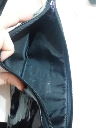 Práctico neceser o bolsa para maquillaje. - Diseño moderno y brillante. - Cierre de cremallera. - Incluye un pequeño adorno en forma de estrella. De marca china, salvo por ciertas manchas de maquillajeen el interior, está completamente como nuevo