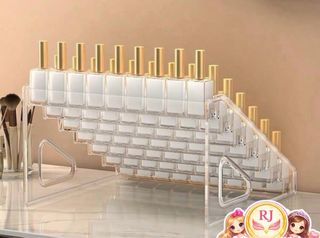 Organizador de maquillaje en acrílico transparente con diseño de escalera. Envios ✈️🩷rapidos por inpost normal - Diseño escalonado para fácil visualización. - Material acrílico resistente y duradero. - Ideal para almacenar esmaltes, labiales y otros cosméticos. No incluye cosmeticos 🌸 🩷🩷 #acrilico #pintalabios #repisa #estanteria #maquillaje #hellokitty #kawai #anime #pintauñas #colorete #moda #casual