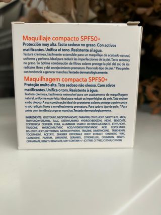 Fotoprotector maquillaje compacto con color y SPF 50+. - Tacto sedoso matificante. - Protección muy alta UVA UVB-IR. - Ideal para pieles reactivas. - Protección luz azul. - No comedogénico. - Antipolución. - Filtros respetuosos. - Contenido: 10 g.