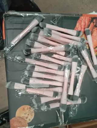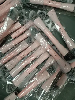 Set de brochas de maquillaje CM BEAUTY, ideales para tu rutina de belleza.22unidades - Mango de color rosa. - Cerdas de color gris.