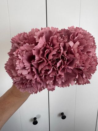 Preciosos claveles para trajes de flamenca. - Diseño voluminoso y detallado. - Color rosa intenso.