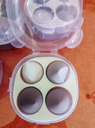 Set de esponjas de maquillaje nuevas, perfectas para aplicar y difuminar productos. - Incluye cuatro esponjas de diferentes tonos. - Vienen en un práctico estuche. - Ideales para uso individual o juntas.