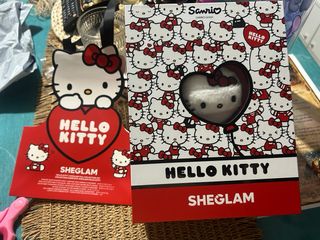 Set de maquillaje de edición especial Hello Kitty. - Incluye varios productos de belleza. - Diseño temático de Hello Kitty. - Tonos rojos y rosas.