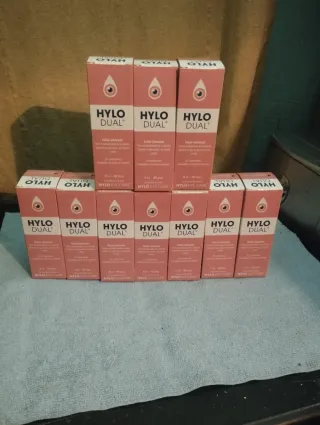 Se vende lote de 10 unidades de gotas lubricantes HYLO DUAL precintados sin usar totalmente nuevos sin caducar hasta julio de 2026 .Se vende lote completo por 100 euros o por unidades sueltas - Colirio lubricante. - Para la estabilización de la película lagrimal. - Compatible con lentes de contacto.