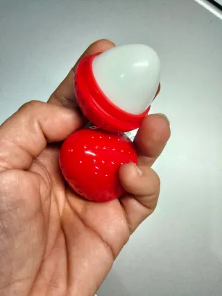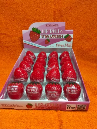 - Balsamo labial de fresa, con forma de fresa. - Hidratación sin color. - Aroma a fresa. - Sabor fresa.