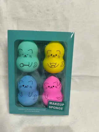 Set de 4 esponjas de maquillaje. Ideales para aplicar productos de maquillaje en seco o húmedo. - Textura suave para la piel. - Aptas para uso diario.