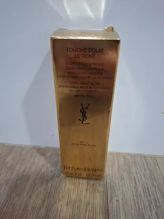Base de maquillaje Touche Éclat de Yves Saint Laurent. - Tono: BR 10 Cool Porcelain. - Cobertura media y acabado luminoso. - Hidratación durante todo el día. - Protección solar SPF 22/PA++. - Formato: 25 ml.