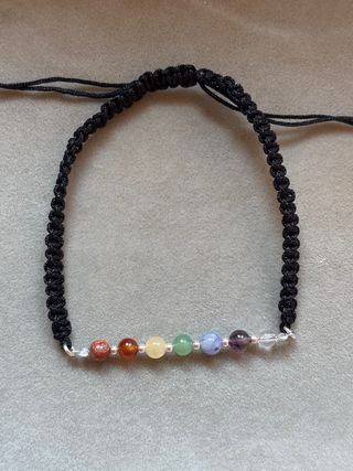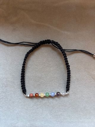 Pulsera con piedras naturales que representan los chakras. Es un accesorio ajustable y cómodo. - Diseño con 7 piedras de colores. - Cierre de cordón ajustable.