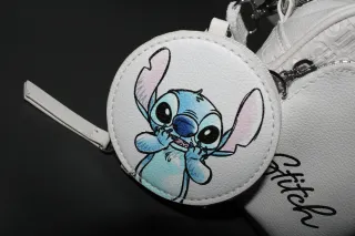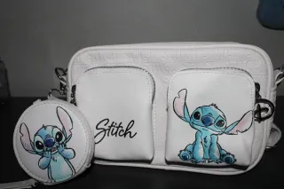 Bolso blanco con diseño de Stitch y monedero a juego. - Estampado de Stitch en el monedero. - Dibujo de Stitch en uno de los bolsillos frontales. - Textura con el nombre Stitch. 💌 Envío rápido desde Wallapop 📍 También puedo entregar en mano si estás cerca