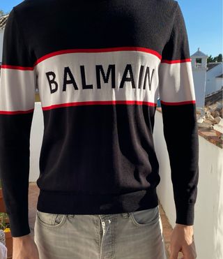 Balmain men's logo sweater Black/White/Red Soft, lightweight fabric (comfortable for year-round wear)