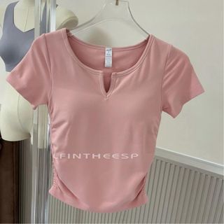 Blusa cómoda y estilosa, perfecta para yoga o para el día a día. Su diseño fruncido en los laterales le da un toque moderno. - Tejido suave y elástico. - Escote en V con detalle. - Mangas cortas.