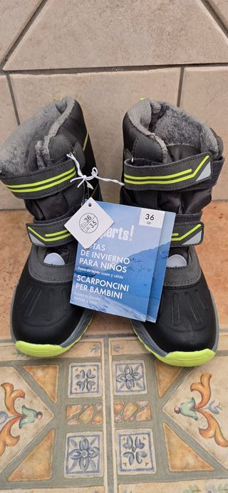 Botas de invierno para niños Perfectas para mantener los pies calientes y secos. Talla 38 - Diseño en color negro y gris. - Cierre con velcro para un ajuste fácil. - Suela antideslizante para mayor seguridad. - Interior forrado para mayor calidez.