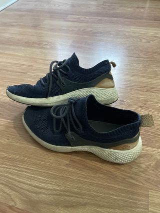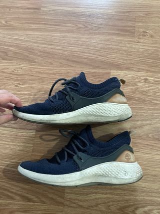 Zapatillas Timberland con un diseño moderno y cómodo. - Parte superior de malla transpirable en color azul. - Detalles en ante color beige en el talón y laterales. - Suela de goma blanca con textura. - Cierre de cordones. - Tirador en el talón para facilitar su puesta.