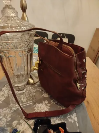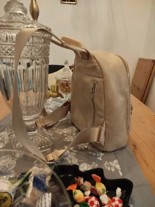 Bolso de mano de la marca ROSE NUDE en color beige. - Diseño elegante y moderno. - Cierre de solapa con broches dorados. - Material de ante. - Correa ajustable.