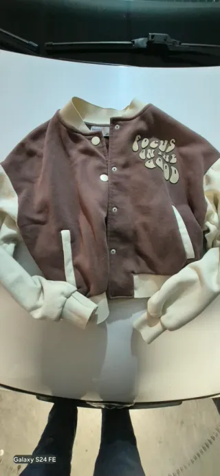 Cazadora estilo beisbolera para niña. - Diseño con mangas de diferente color. - Detalle de texto en la parte delantera. - Cierre de botones a presión.