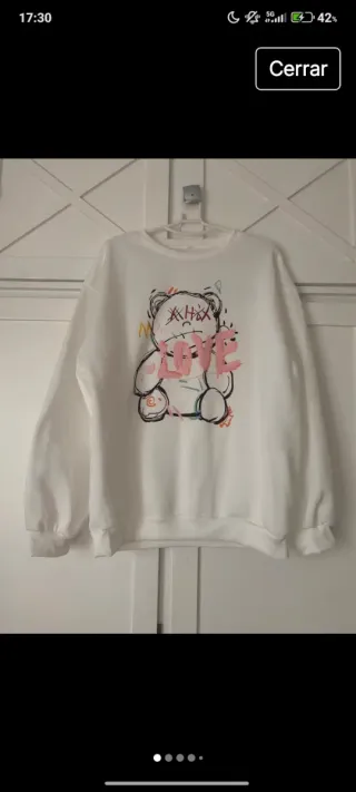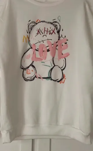 Sudadera blanca con estampado de oso y la palabra LOVE. - Diseño de oso con detalles de puntadas y colores. - Estampado frontal llamativo. - Manga larga y cuello redondo.