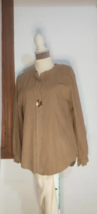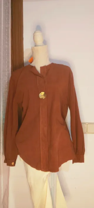 Blusa de pana en color marrón, con un diseño clásico y elegante. - Cuello mao. - Cierre de botones. - Detalle de botón decorativo.