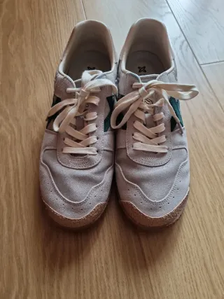 Zapatillas Munich de ante en color beige con detalles en verde. - Cierre con cordones. - Suela de goma. - Diseño deportivo.