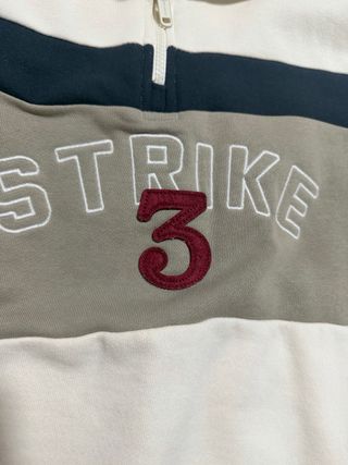 Jersey de Springfield con diseño de bloques de color y detalle de cremallera. - Cremallera parcial en el cuello. - Paneles de diferentes texturas y colores. - Detalle de número y texto bordado en el pecho.