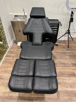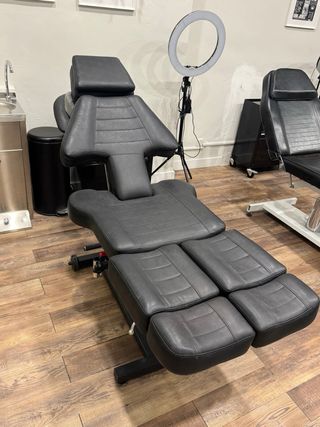 Se venden camillas profesionales de tatuaje en excelente estado. • Camilla hidráulica plana, muy estable y cómoda, ideal para sesiones largas. Respaldo y zona de piernas ajustables. Tapizado profesional en polipiel negra, fácil de limpiar y bien conservado. • Camilla articulada multiposición tipo premium, diseñada específicamente para tatuaje. Cuenta con respaldo regulable, reposabrazos independientes y secciones ajustables que permiten trabajar cualquier zona del cuerpo con máxima ergonomía para el tatuador y comodidad para el cliente. Ambas camillas han sido utilizadas en estudio profesional, se encuentran en perfecto estado.