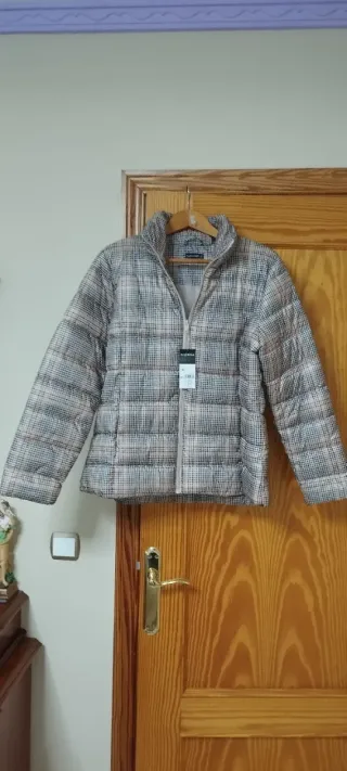 Chaqueta acolchada cuadros mujer