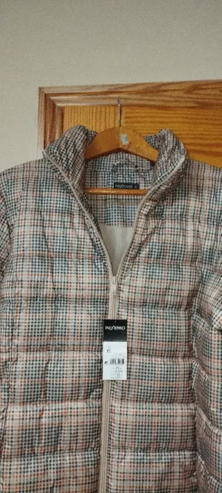 Chaqueta acolchada con estampado de cuadros. - Diseño ligero y cálido. - Cierre de cremallera frontal. - Cuello alto.