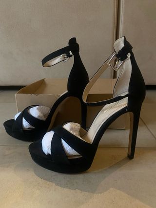 Elegantes zapatos de tacón de Zara, perfectos para cualquier ocasión especial. Están sin usar y en perfecto estado. - Diseño de tiras cruzadas en la parte delantera. - Plataforma delantera para mayor comodidad. - Cierre de pulsera con hebilla metálica. - Tacón de aguja alto y estilizado.