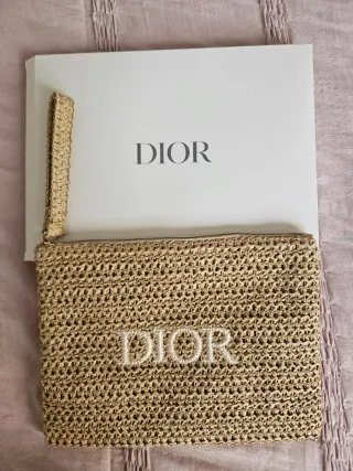 Neceser de la marca Dior en color beige con asa , ideal para llevar como bolsito de mano en verano o como parte de tu bolsa de playa o neceser de skincare. Está sin estrenar y se envía con su caja