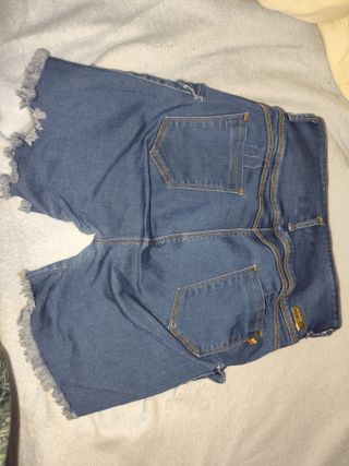 Short estilo pirata de origen colombiano. Un diseño moderno y llamativo. - Detalle de ojales dorados en los laterales. - Cintura alta con cierre de cremallera y botones. - Bajo deshilachado con acabado desgastado.