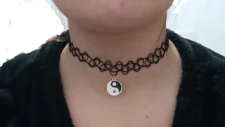 3 gargantillas elásticas con un diseño tattoo y un colgante con el símbolo Yin Yang. - Una negra - Una transparente - Una negra con colgante con diseño Yin Yang.