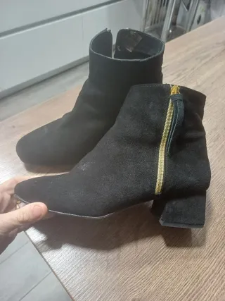 Botines negros ante con cremallera dorada
