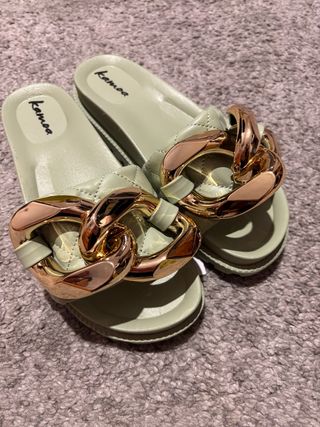 Sandalias Kamoa verde menta con cadena dorada