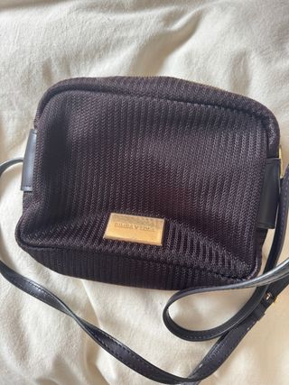 Bolso pequeño de la marca Bimba y Lola en color vino/burdeos oscuro. Se encuentra en buen estado. - Diseño tejido. - Placa metálica dorada con el logo. - 21x14 aprox