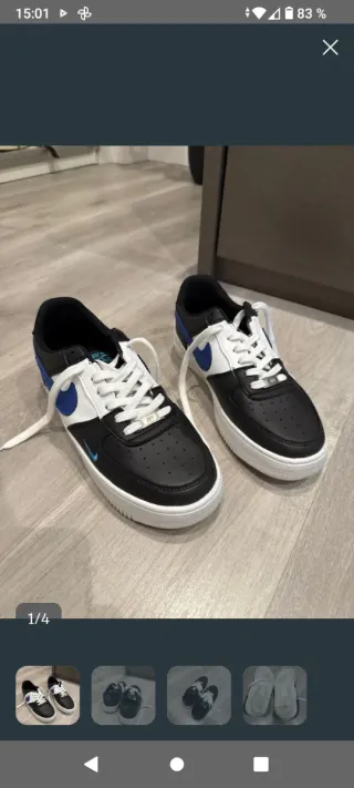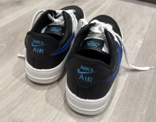 Por equivocación en talla vendo Zapatillas Nike Air Force 1 con un diseño moderno y llamativo. - Combinación de colores negro, azul y blanco. - Cierre con cordones blancos. - Detalle de swoosh azul en el lateral.