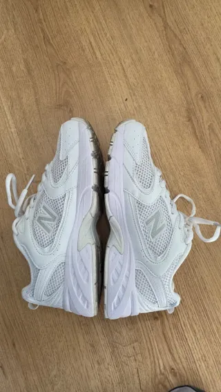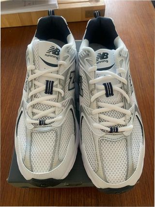 Zapatillas deportivas New Balance 530 en color blanco. Un clásico para el día a día. - Diseño de malla transpirable. - Suela con amortiguación. - Detalle del logo 'N' en los laterales. Me las regalaron por reyes y tienen 2 usos, me quedan pequeñas y no pude cambiarlas por falta de ticket.