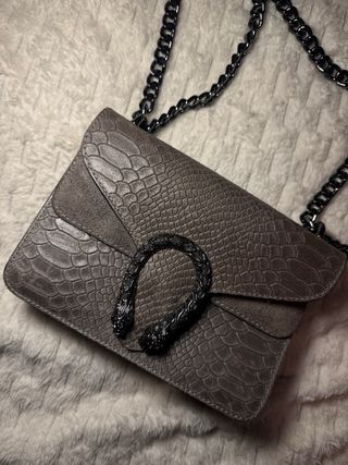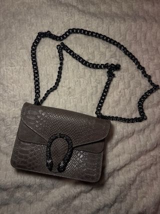 Bolso gris con cadena