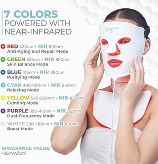 Mascarilla facial y de cuello LED Nourished bodyskin, precintada. Incluye 2 piezas de silicona para los ojos. - 7 colores de luz + infrarrojo cercano - Terapia de luz LED para rostro y cuello - Ayuda a combatir el envejecimiento