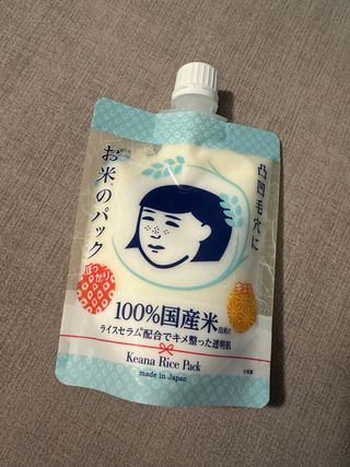 Mascarilla facial japonesa Keana Rice Pack, elaborada con arroz 100% nacional. - Contieneライスセラム (Rice Serum) para una piel suave y transparente. - Ayuda a mejorar la apariencia de los poros. - Fabricada en Japón.