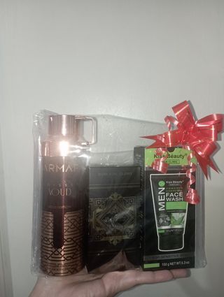 Set de regalo para hombre con varios productos de cuidado personal. - Eau de Toilette Boxer by Prady. - Vittoriale Shampoo & Shower Gel (300 ml). - Vittoriale Body Spray (150 ml). - Mascarilla Facial Kiss Beauty Men's Face Wash (150 g). * Se entrega o envía envuelto para regalo con plástico trasparente y lazo. * Ideal para regalo de cumpleaños, navidad, Papá Noel, Reyes, Santo, celebración, aniversario, navidades, amigo invisible, san Valentín, graduación, etc... Más cestas en mi perfil .