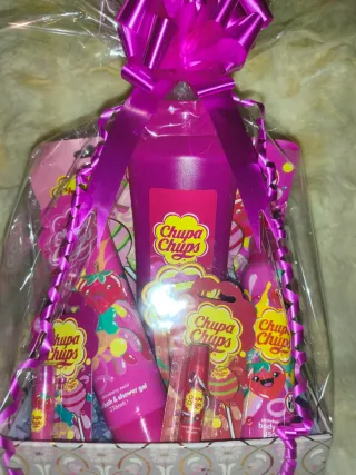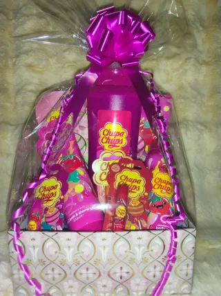 Preciosa cesta de regalo temática de Chupa Chups, ideal para un detalle especial. Contiene varios productos de la marca. - Gel chupachups 750ml. - 2 mascarilla faciales chupachups. - 2 en 1 gel de baño y ducha 236ml. Chupachups. - 3 bálsamo labial chupachups. - spray corporal chupachups 150ml. - se puede personalizar poniendo el nombre y felicitación Es ideal para regalo de cumpleaños, navidad, Papá Noel, Reyes, Santo, celebración, aniversario, navidades, amigo invisible, san Valentín, graduación, día de los enamorados, etc. Puedes ver esta o otras cestas en mi perfil o en tiktok Decoracionesrocio o cosas.bonitas_rocio