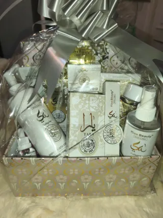 (ENVIO GRATUITO E INMEDIATO) Preciosa Cesta para regalo 🎁 Contiene 6 productos: - Una preciosa bufanda o pasmina de Cashimir blanco con piedras muy suave y gran calidad. - Perfume Yara 50ml Lattafa. - Bruma Corporal. - Mascarilla Facial. - Tónico Facial - Prebase o Primer. *Se entrega envuelto en plástico trasparente y lazo listo para enviarlo. *Se hacen cestas o pack a su gusto con los artículos de mi perfil, visitá mi perfil tengo muchas ofertas interesantes 😊 *Ideal para regalo de cumpleaños, navidad, Papá Noel, Reyes, Santo, celebración, aniversario navidades amigo invisible, san Valentín, graduación,