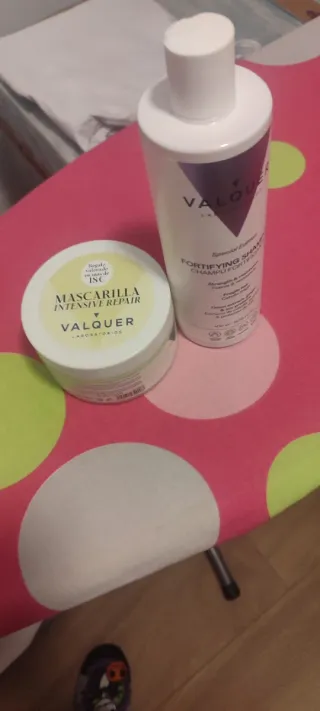 Set de champú y mascarilla para el cuidado intensivo del cabello. - Champú Fortifying de Valquer. - Mascarilla Intensive Repair de Valquer.